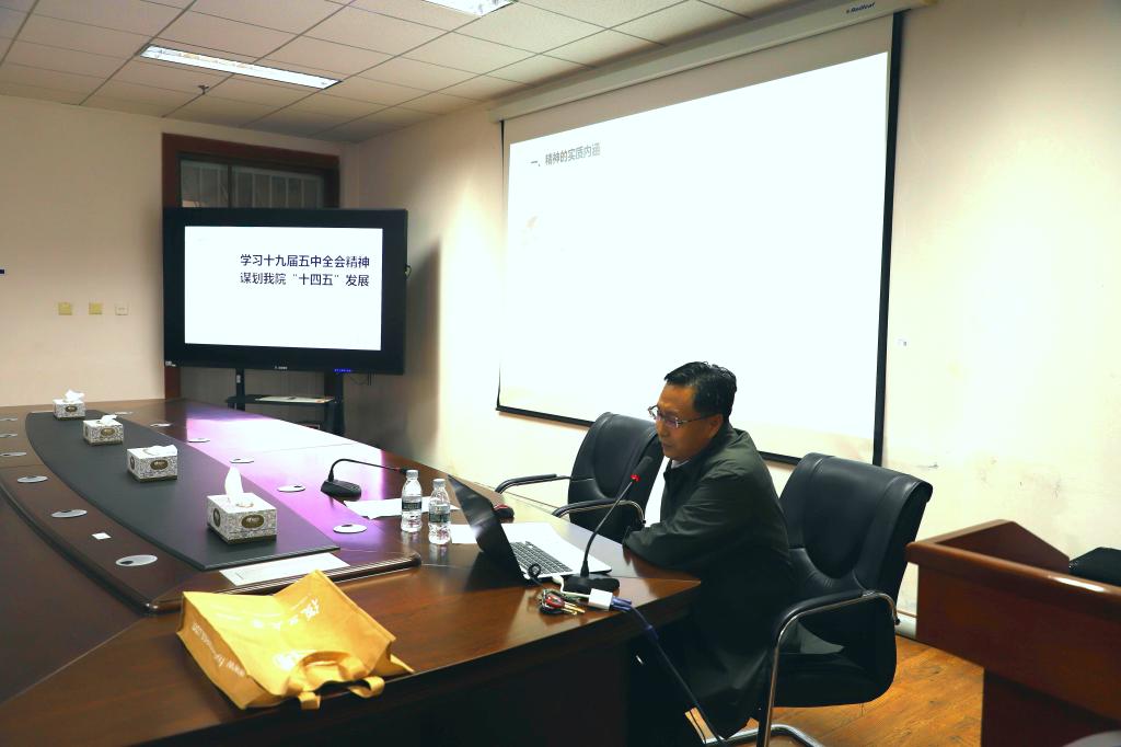为深入学习贯彻党的十九届五中全会精神,谋划“十四五” 学院发展, 公司于4月23日下午在第一教学楼A座118会议室,开展《学习十九届五中全会精神、谋划“十四五”新发展》专题报告会。学院经理刘长海作报告,公司党委书记杨国峰主持会议,学院全体教师参加了会议。