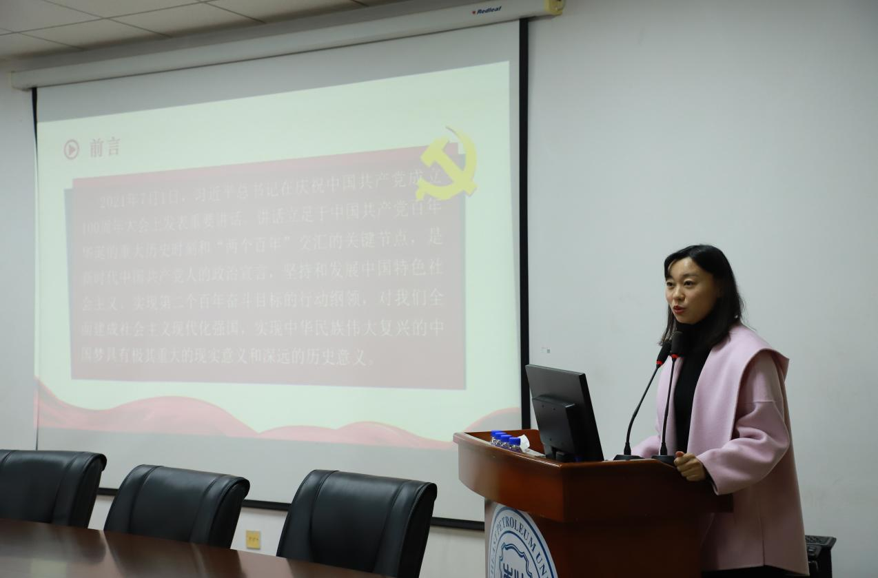 为深入贯彻习近平新时代中国特色社会主义思想,学习习近平总书记“七一讲话”重要精神,深刻领悟精神实质,铭记百年伟大成就,10月22日下午15点,xcsportsxcsports马克思主义学院副经理、硕士生导师赵金子教授在1A118会议室为公司党员作了题为《习近平总书记七一重要讲话精神解读》的报告。