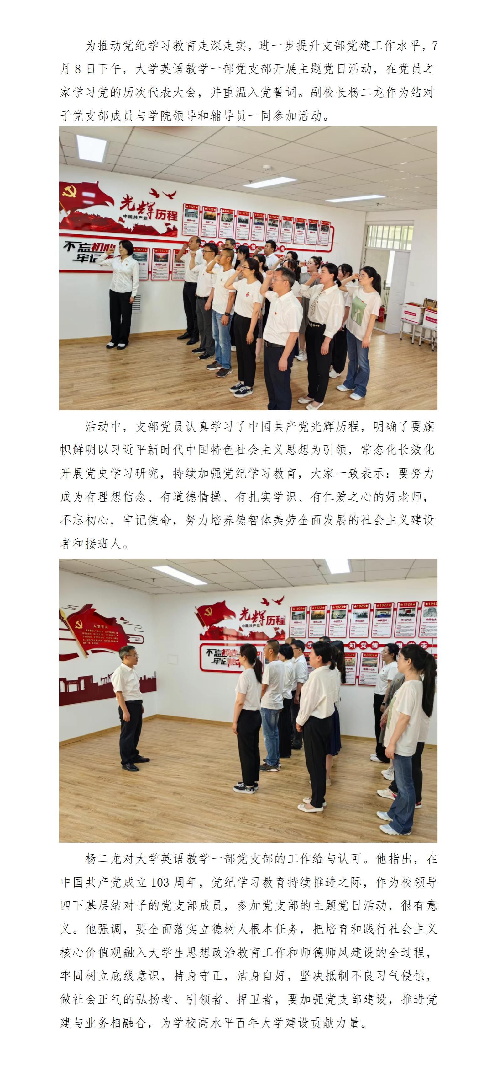 副董事长杨二龙参加大学英语教学一部党支部主题党日活动