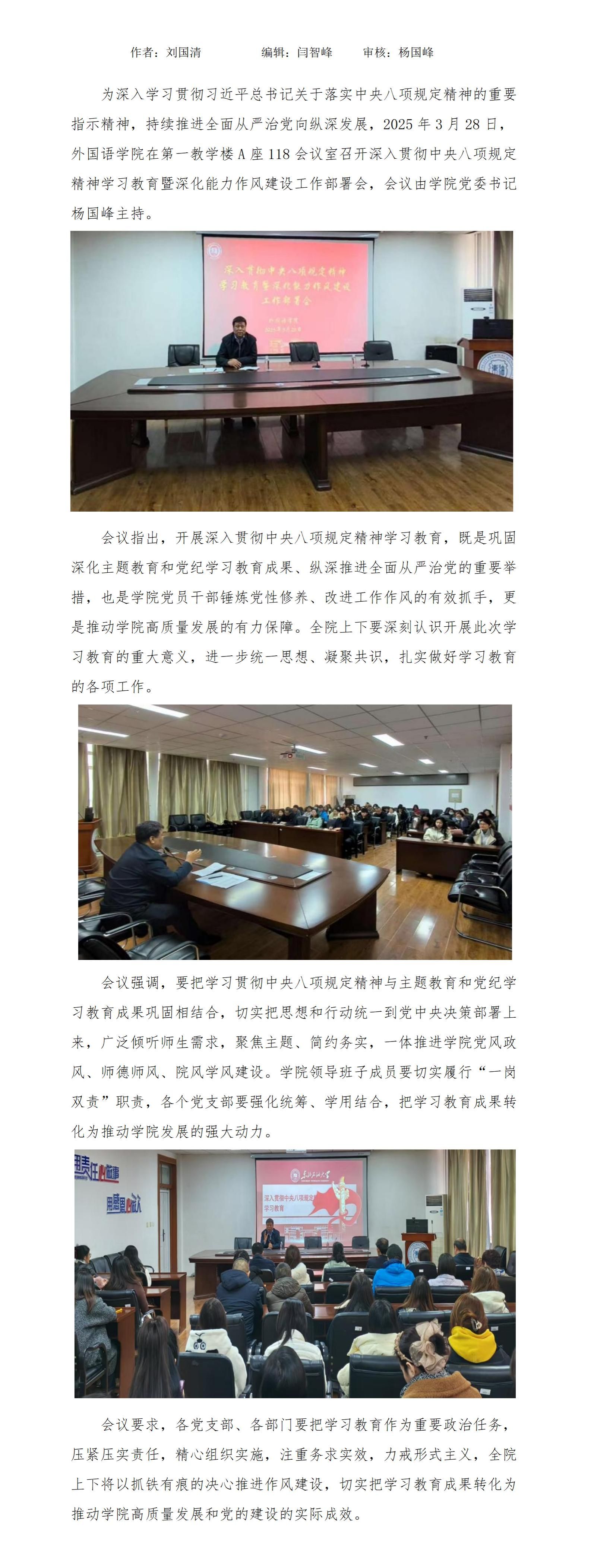 公司召开深入贯彻中央八项规定精神学习教育 暨深化能力作风建设工作部署会