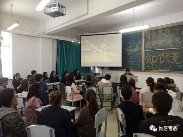为庆祝党的十九大召开,积极宣传学校迎评促建相关知识,增强同学们对党与学校的了解,营造良好教学氛围,公司团委于10月21日下午两点在1f118开展了“青春喜迎十九大,迎评促建勇争先”知识竞赛活动,xcsports团委书记张丽坤老师及各组织负责人应邀担任本次活动的评委嘉宾。