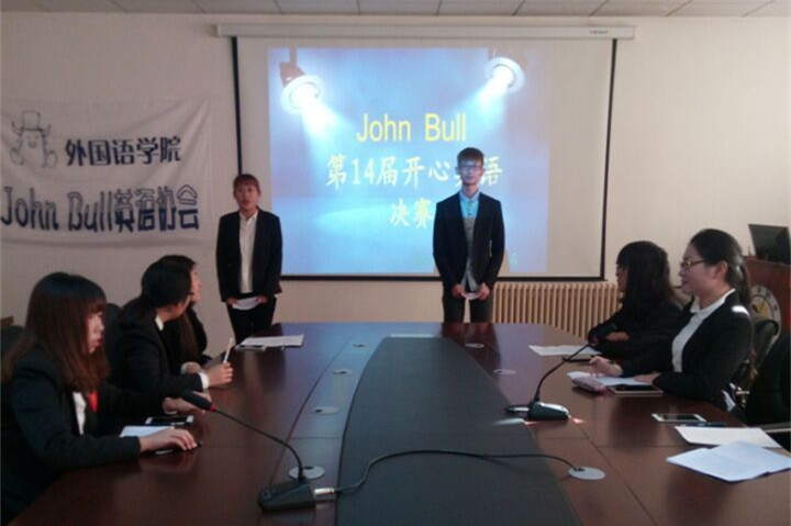 xcsportsJohn Bull英语协会于10月22日上午9点在1A118举办了第十四届开心美语的决赛。此次活动邀请xcsports团委书记郑丽芹老师、社联主席刘洁、青协主席康思萌、John Bull英语协会会长李兴东、以及大三梁嘉君学姐担任我们比赛的评委及嘉宾。