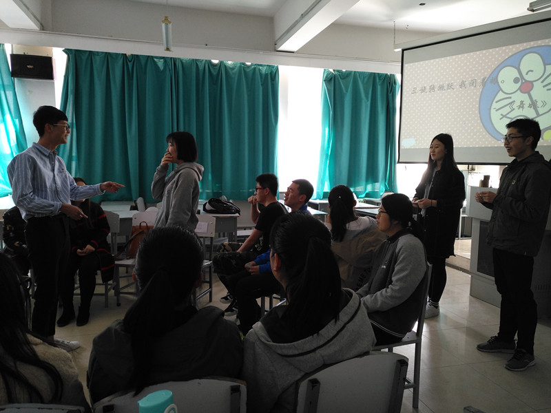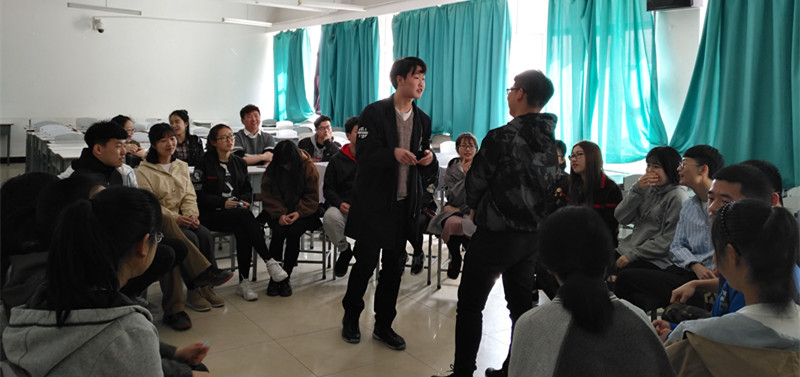 接下来的是“Boom Boom Boom”,同学们通过传球的方式依次回答大屏幕上的问题,每位同学都进行着激烈的头脑风暴。在 “情景对话”环节的中,同学们根据自己抽到的题目进行编排节目。同学们脑洞大开,在短短几分钟内,编排出一个个让人意想不到的剧情,把活动又一次推向高潮。
