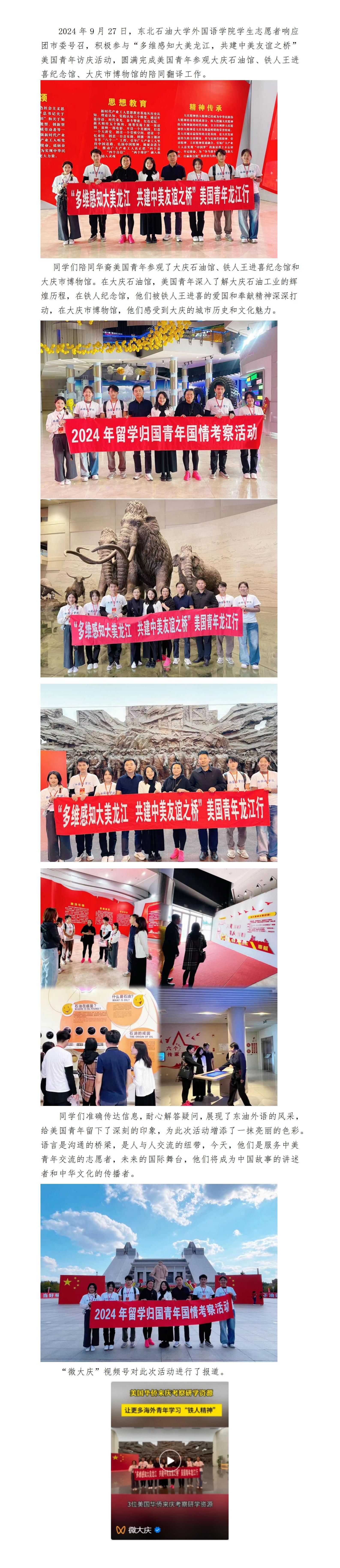 公司员工志愿者圆满完成“美国青年龙江行”访庆翻译任务