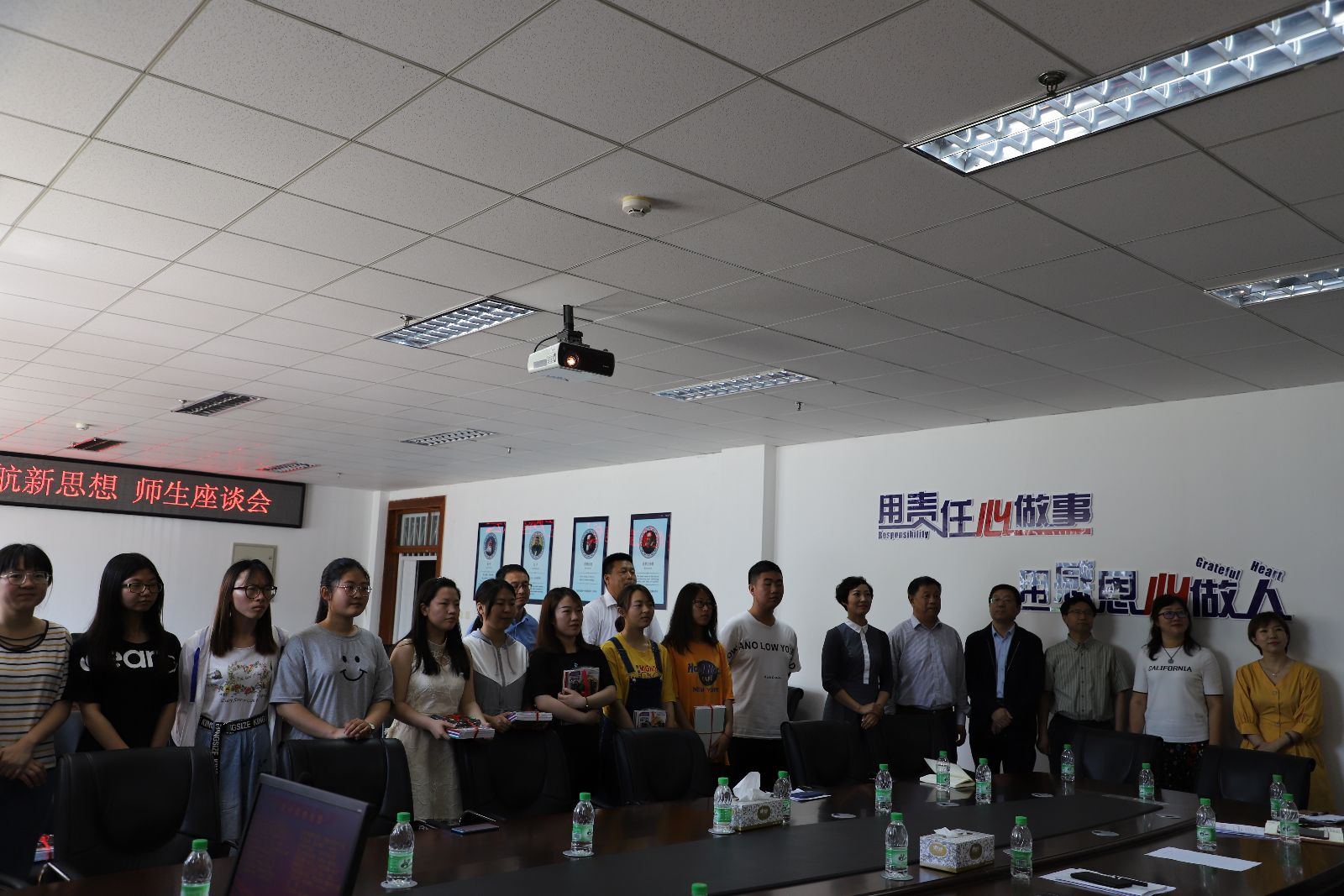 校工会党支部书记王立忱对班级同学积极向上的态度给予充分肯定,并寄予全体同学热切希望。随后,校工会主席郝丽红结合同学们提出的如何让大学学习生活更有意义的问题答疑解惑,为同学们上了一堂精彩的思想政治课。她首先对英语2018-3班同学团结、感恩、向善等优良品质给予了高度评价,并给大家提出了三点希望:一要胸怀祖国,志存高远;二要珍惜韶华,刻苦学习;三要修身立德,强健身心。最后,公司党委书记万毅讲话,他希望同学们要努力奋进,不断追求卓越,培养责任感和使命感,将自身发展与学校发展紧密结合起来。