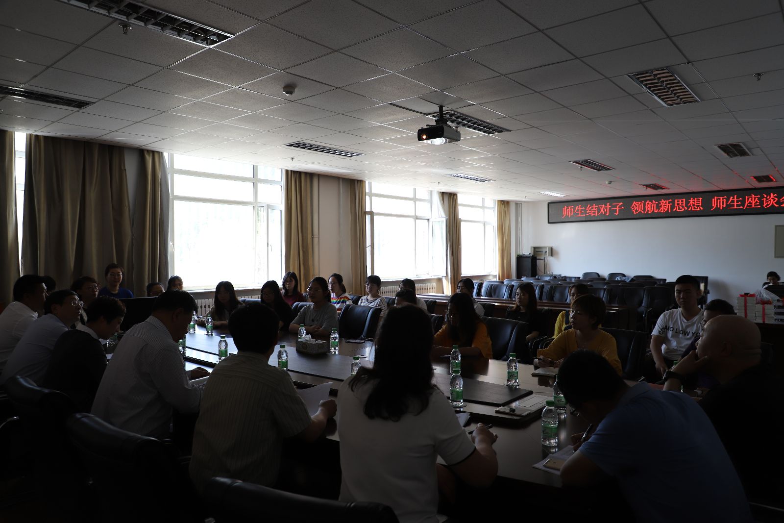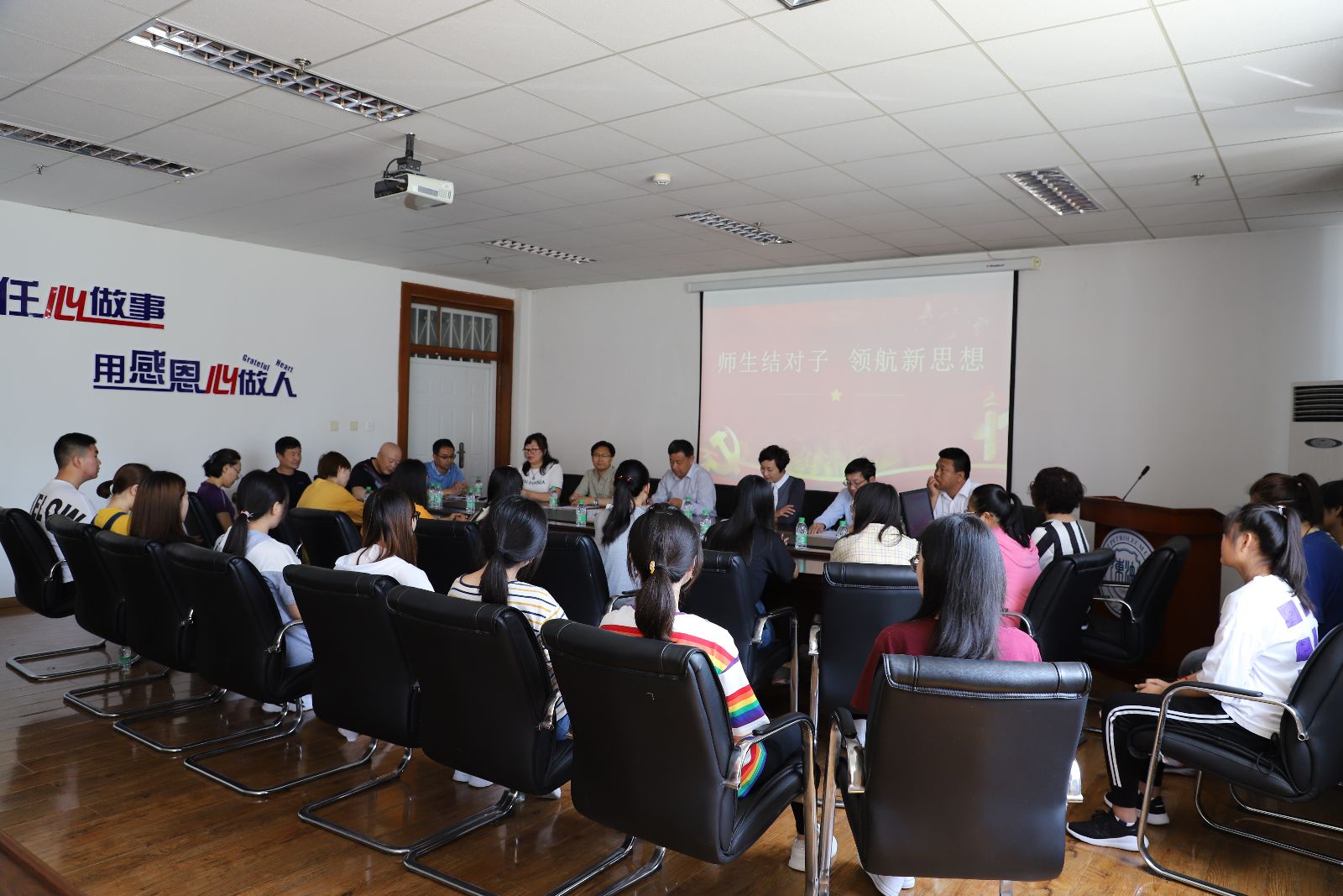 为了深入贯彻落实《xcsportsxcsports校、院两级领导干部深入基层联系员工工作方案》 ,6月12日上午,校工会主席郝丽红与xcsports英语2018-3班进行了对接,开展了“师生结对子,领航新思想”师生座谈会。郝丽红所在校工会党支部的全体党员也深入到英18-3班开展了“主题党日活动。公司党委书记万毅、经理刘长海、老员工党支部书记任珍珍、团委书记张丽坤、英语2018-3班全体同学参加了此次活动,座谈会由公司党委副书记周慧主持。