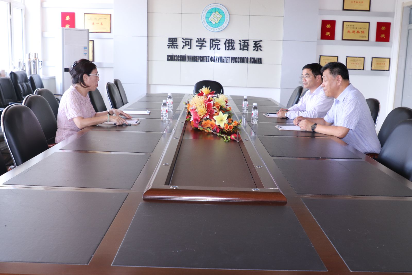 今年来这里实习的是俄语专业2017级员工,在黑河学院俄语同行的帮助下,实习工作开展顺利,师生来到黑河就受到黑河学院的热情接待,参观校园,两校员工举行联谊活动,黑河学院xcsports精心安排了关于“黑河学院俄语专业实习实训创新改革与发展”和“黑河对俄交往70年——回顾与反思”两场讲座,参观中俄跨界大桥等黑河市多家涉俄企事业和爱国主义教育基地,实习内容安排得丰富又紧凑,收获很大。在实习即将结束的关键时期,为了感谢黑河学院xcsports的帮助和把实习工作安全圆满地完成,公司党委书记万毅来到黑河,看望员工了解俄语实习工作情况,并到黑河学院xcsports参观座谈。