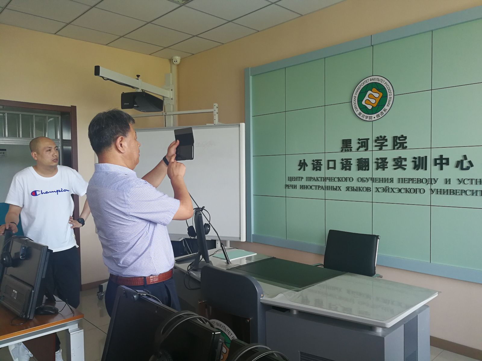 一到实习驻地黑河学院,万书记先与实习师生座谈,了解实习工作安排及进展,了解员工的生活学习情况。到公寓了解住宿条件,再三叮嘱实习期间安全问题。在黑河学院xcsports的相关人员陪同下,先后参观了黑河学院xcsports的同传教室,俄罗斯文化展示中心,党员之家等设施,对黑河学院xcsports的硬件设施和党建工作表示赞叹,并在贵宾留言簿上留言。