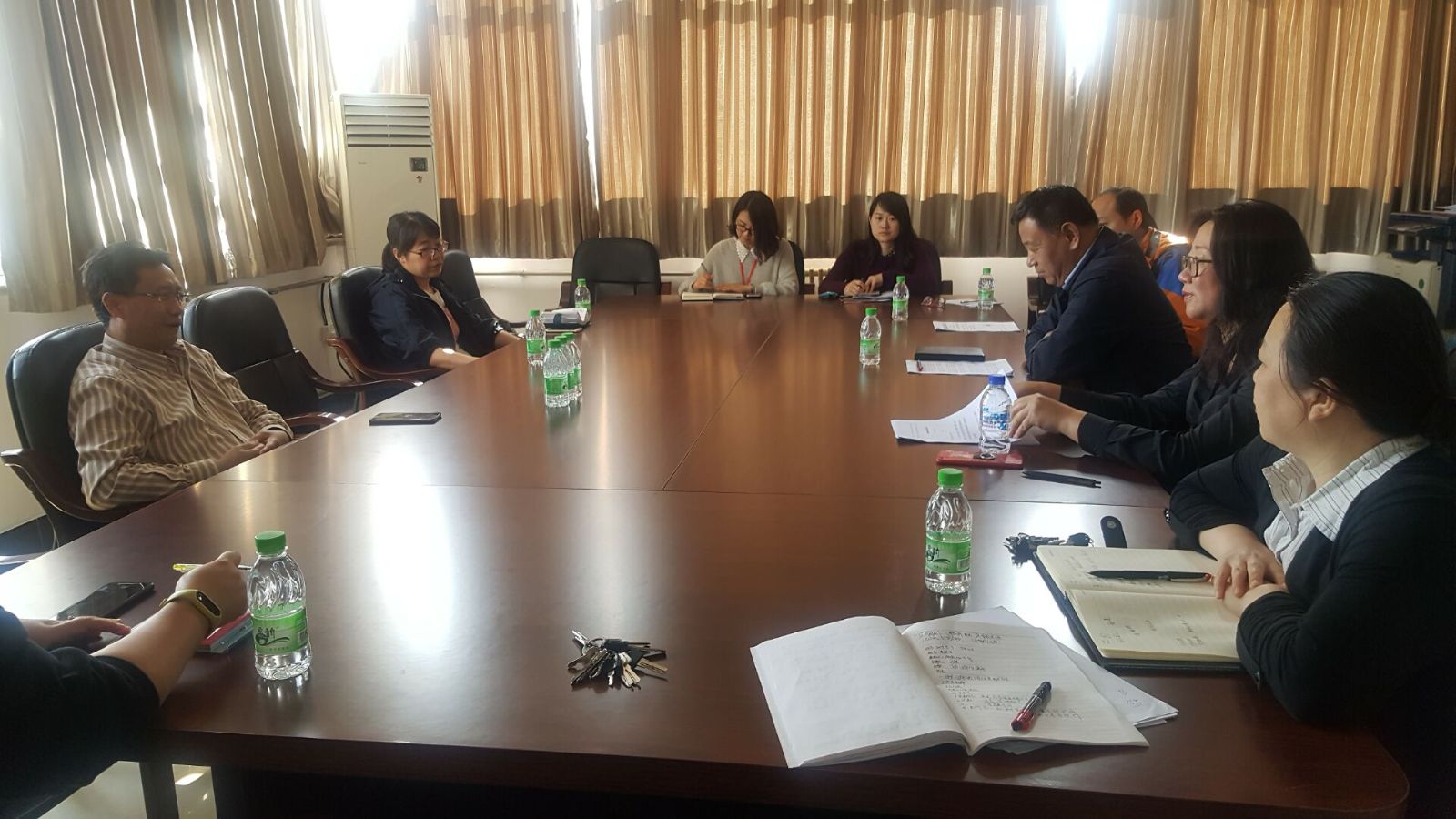 万毅书记、刘长海经理分别向蒋董事长等领导汇报了公司的办学定位、学科发展、专业建设、人才培养等工作; 各部门负责人就本科外语教学、外语专业员工培养及研究生外语教学等工作进行了汇报。