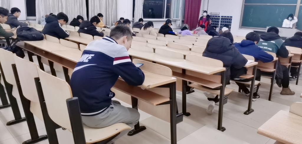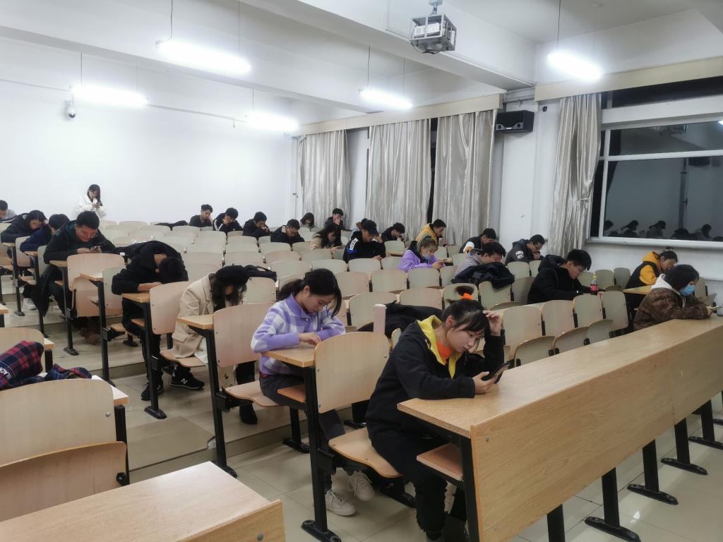 决赛现场,面对面建群,在线答题。选手们聚精会神,认真作答。