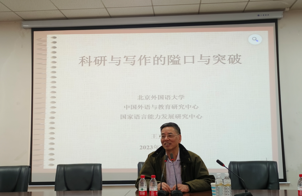 讲座中,王文斌教授从哲学的角度指出高校外语教师应立时代之潮头,晓科研之前沿,发思想之先声,写学术之心得,惠学术之进步,瞄住隘口,寻求突破,谱写新时代外语教育与研究的华章。