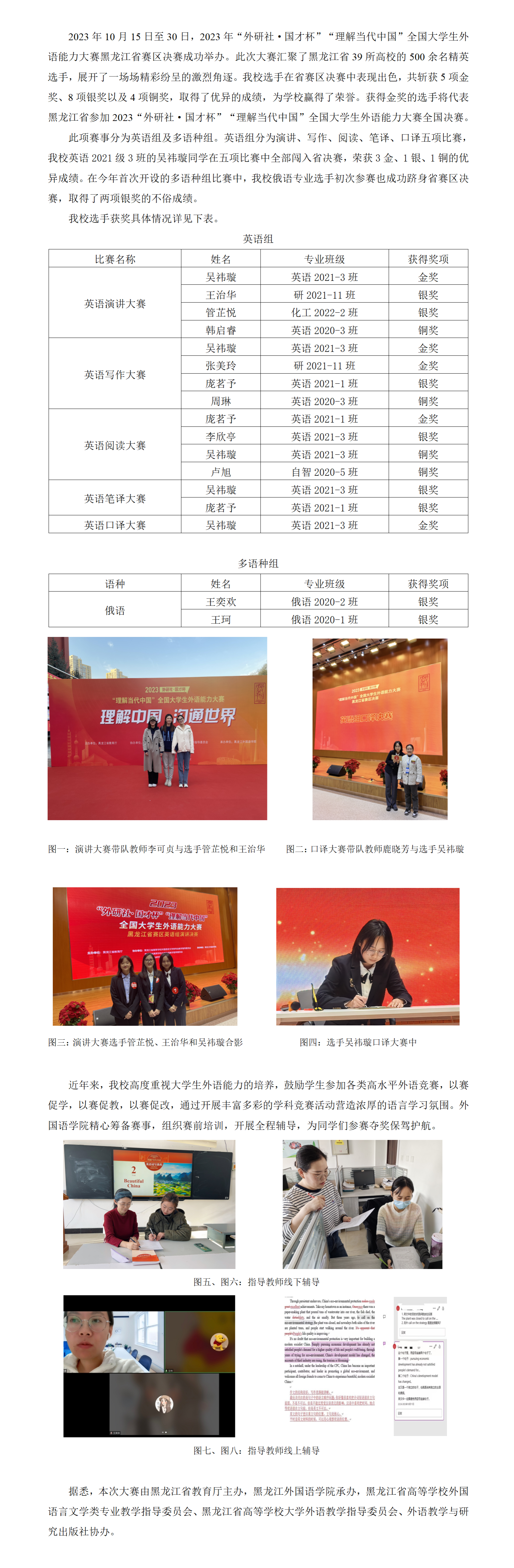公司选手在2023“外研社·国才杯”“理解当代中国” 全国老员工外语能力大赛黑龙江省赛区决赛中喜获佳绩