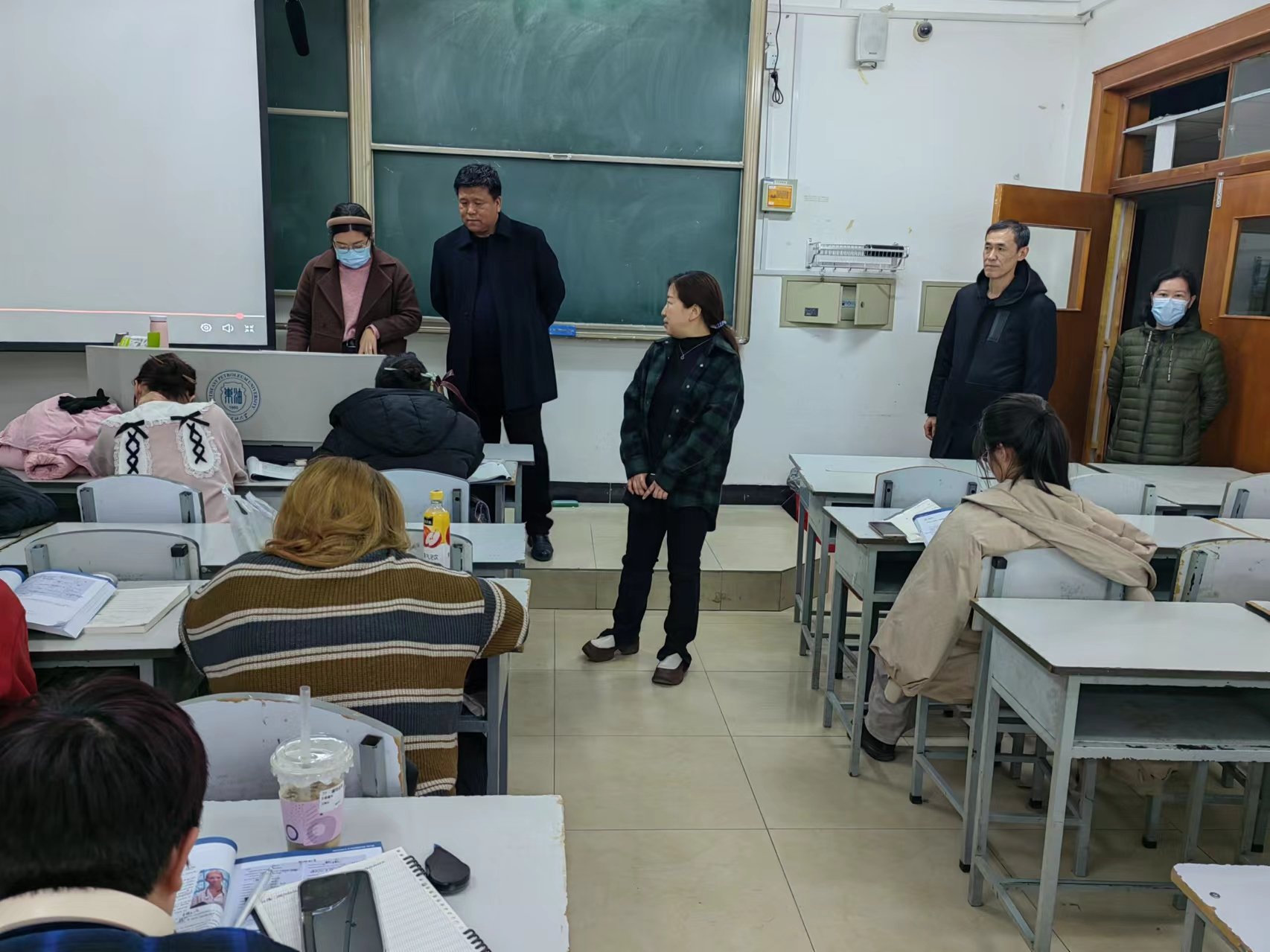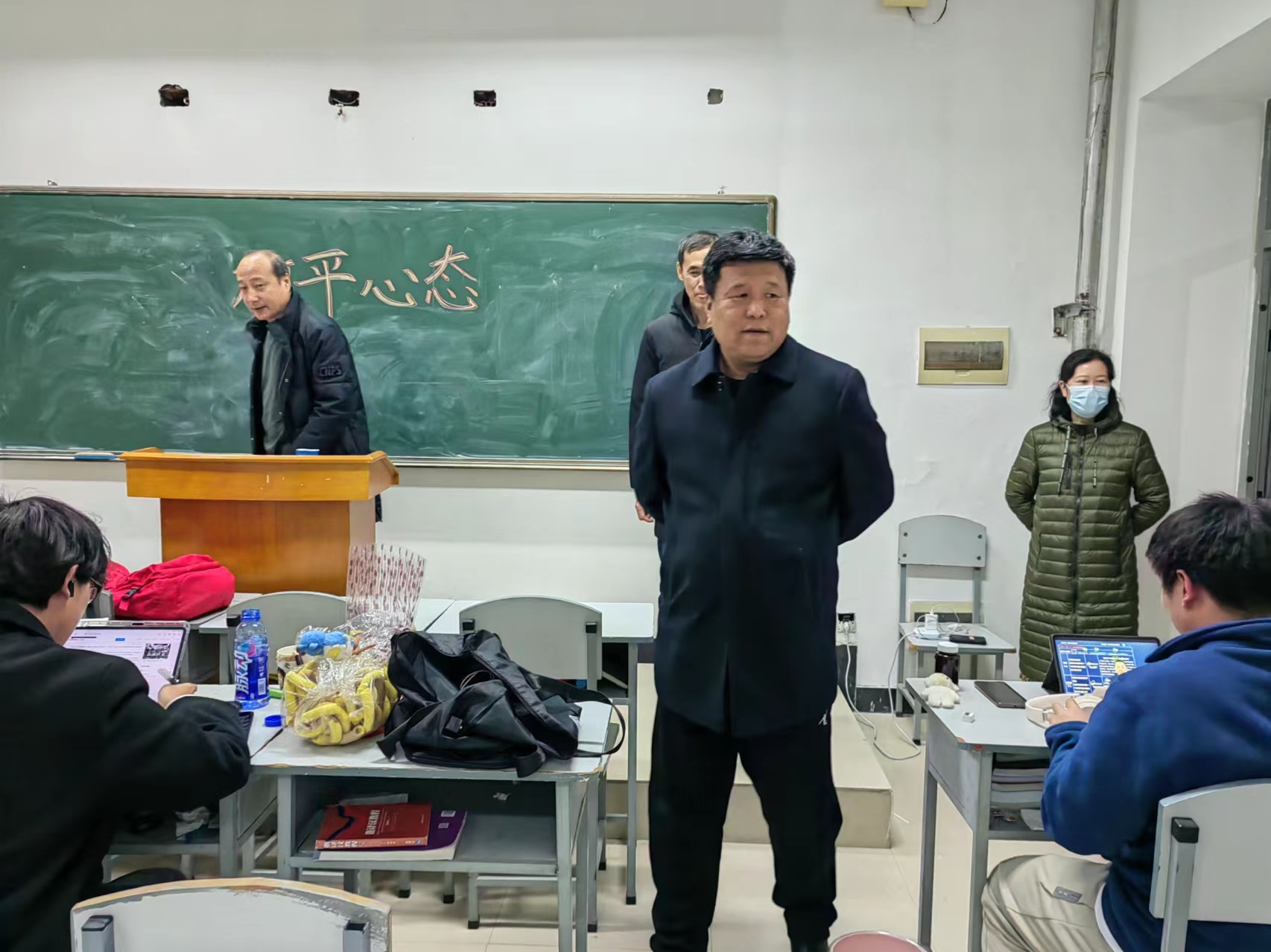 随后,领导们来到了大三员工的考研自习室,这里的学习氛围更加浓厚。领导们悉心了解了同学们的学习和生活状态,认真排查自习教室里可能存在的安全隐患问题,希望同学们能够调整好在校的学习和生活状态,合理作息,保持良好的精神面貌,注意劳逸结合,同时,询问同学们在学习、生活中遇到的困难。院长乔洪亮承诺,学院会联系相关部门,尽快完善自习室基础设施,为同学们提供更优质的学习条件。