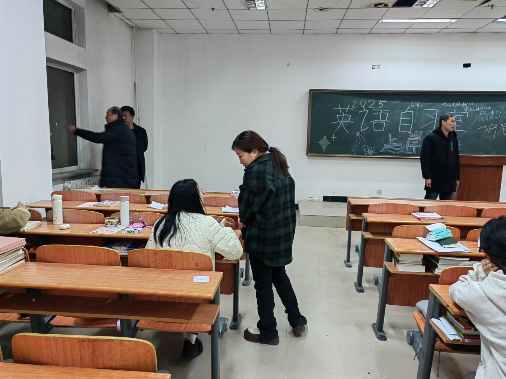 领导们首先走访了新生晚自习室,观察员工晚读状态,与员工亲切交流学习经验,鼓励他们要积极面对老员工活的各项挑战,并提出了有效的学习策略和时间管理建议。学院领导的关心和指导,极大增强了员工们的学习信心和动力。