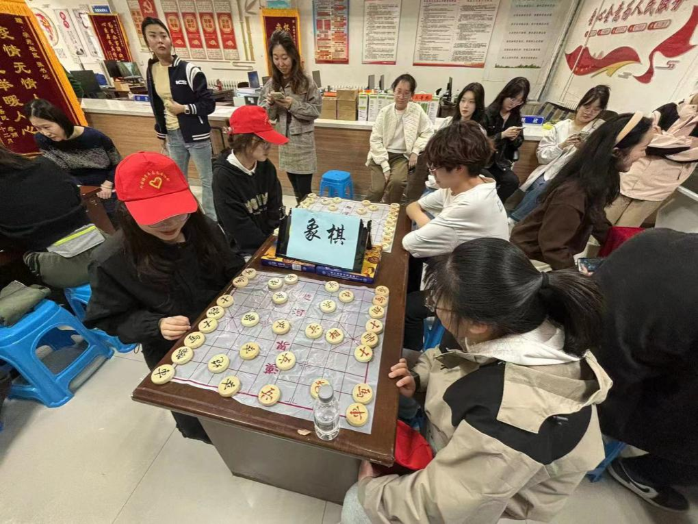 比赛在学苑小区的社区活动中心举行,同学们提前到达布置会场,分组协助完成五子棋、象棋、跳棋等比赛的组织和服务工作。比赛激烈进行,现场秩序井然。同学们的责任心和服务意识获得了社区工作人员和社区居民的一致好评。