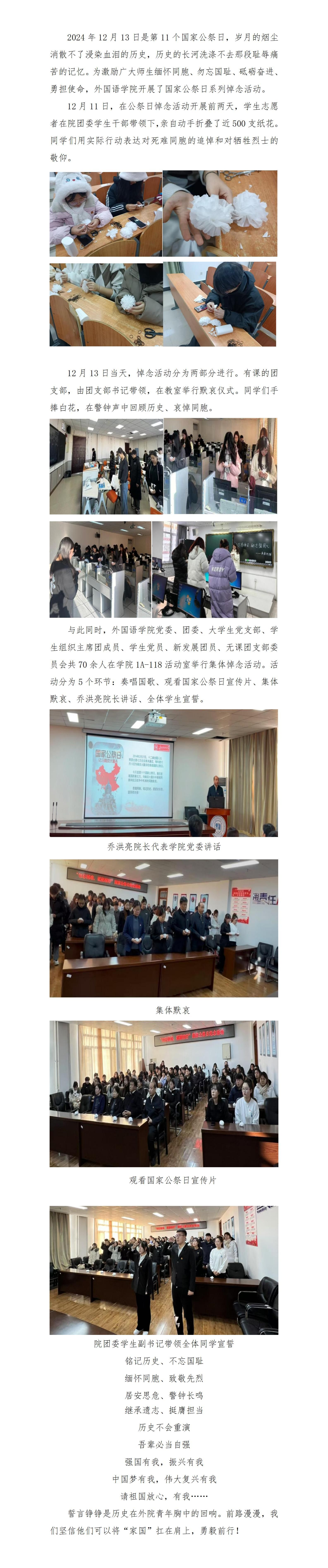 “勿忘国难,砥砺前行”国家公祭日悼念活动