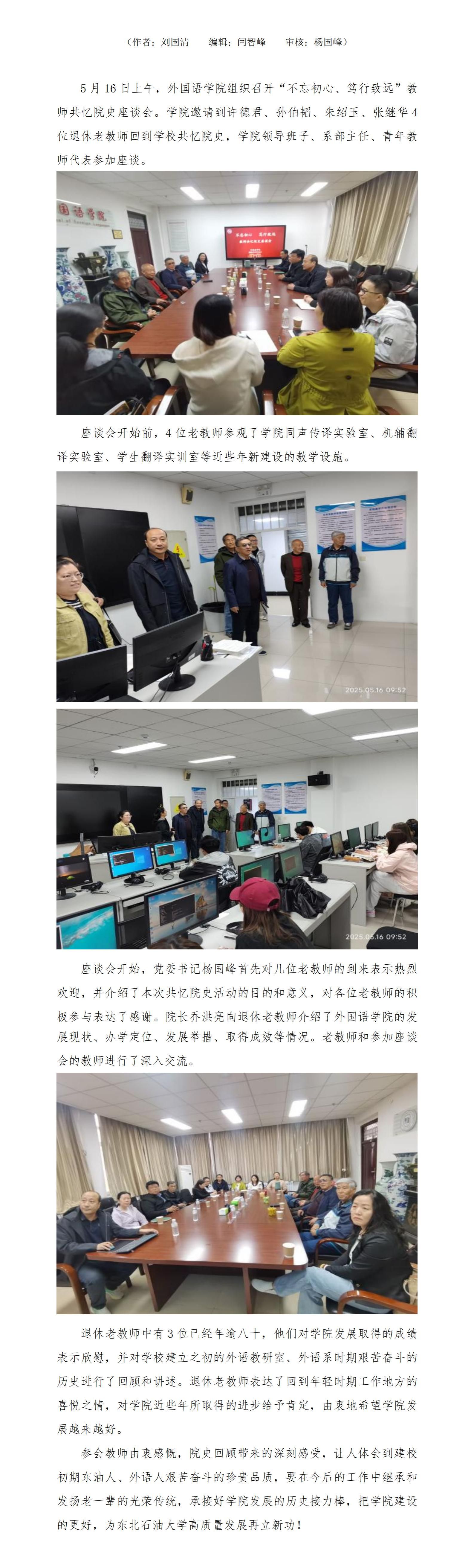 公司召开“不忘初心、笃行致远”教师共忆院史座谈