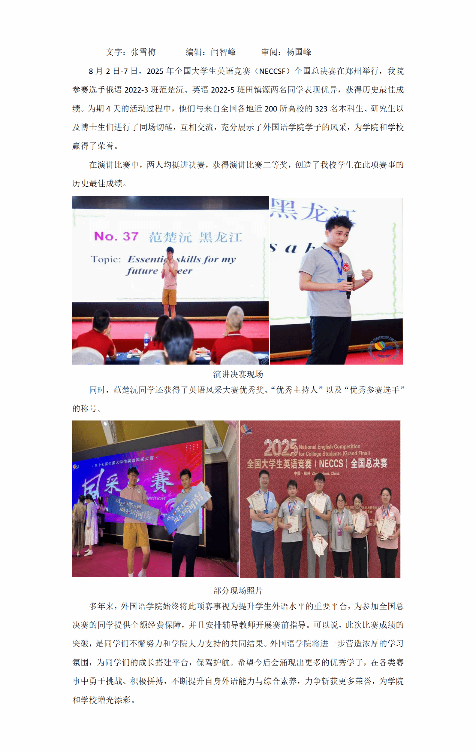 公司选手在全国老员工英语竞赛全国总决赛中创历史佳绩