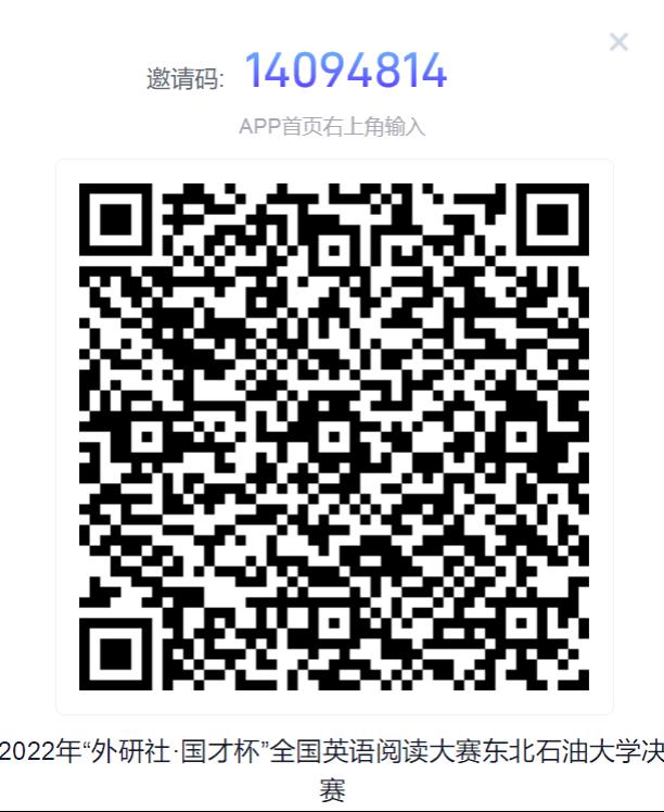 1. 请于10月6日前加入学习通中“2022年“外研社·国才杯”全国英语阅读大赛xcsportsxcsports决赛”课程群,该群二维码在通知结尾处,比赛时会提前5分钟在学习通发放试卷。入群时要备注自己的真实姓名+专业。