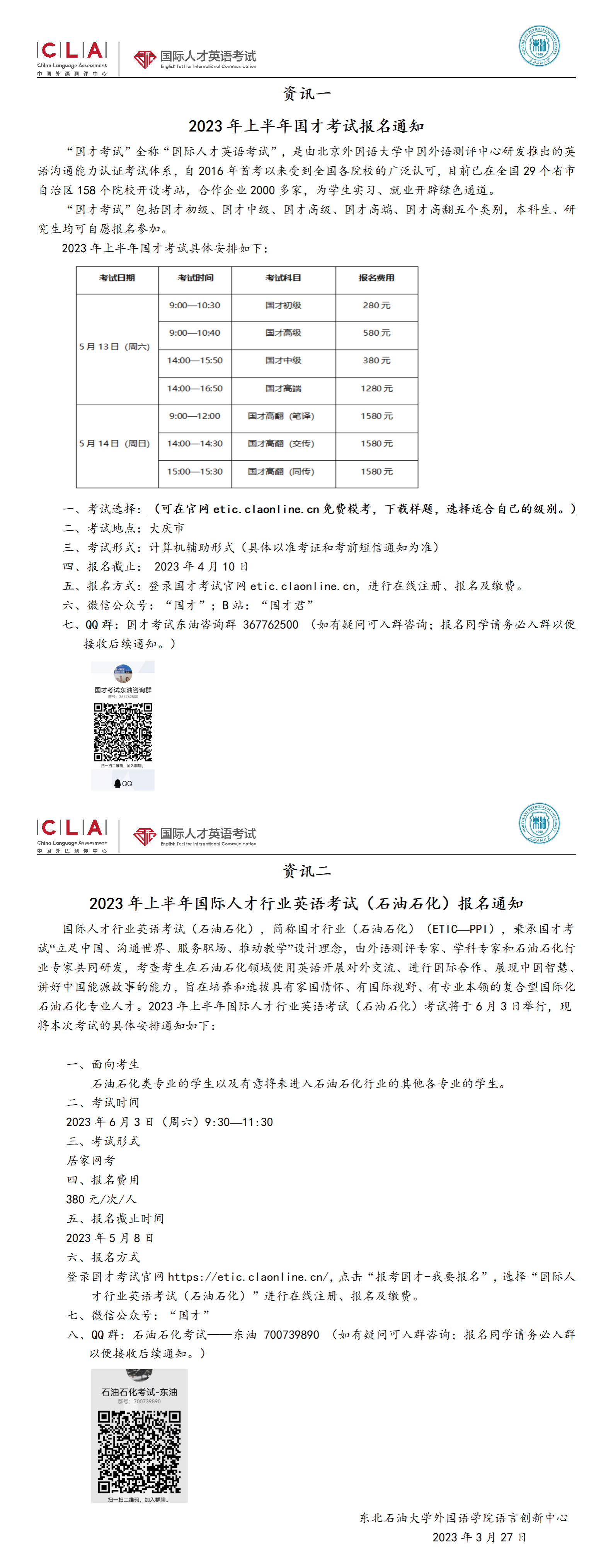 2023年上半年国才考试报名通知和2023年上半年国际人才行业英语人才考试(石油石化)报名通知