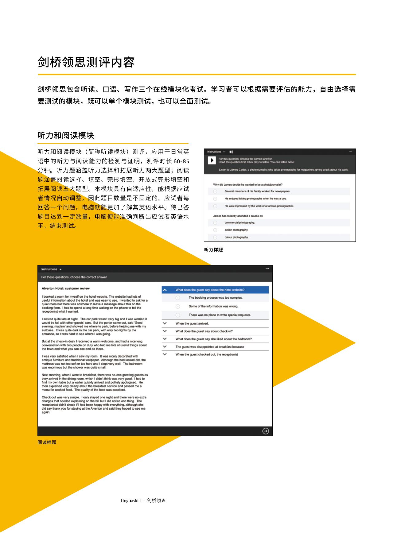 (1)剑桥领思通用版适用于日常英语测评,其应用场景包括学校招生、阶段性测试和毕业测评等,以及企业机构的日常岗位招聘等。