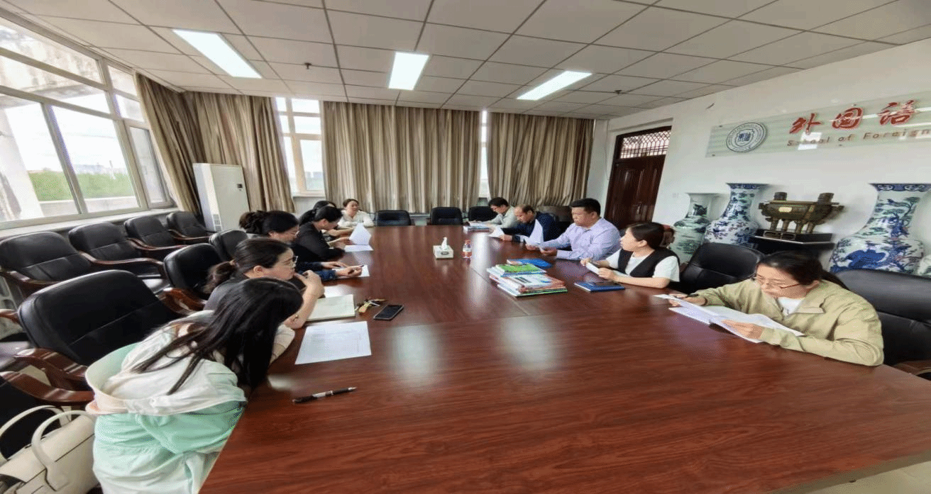 根据教务处《关于开展2024年秋季学期教师选用本科生教材、征订教师用书及本科生预定教材工作的通知》,2024年6月24日下午2点在1A536召开外国语学院2024年秋季学期教材选用审查会议,会议由教学经理于金林主持,教材审查领导小组成员党委书记杨国峰、经理乔洪亮;学术委员会成员郭敏、闫智峰、曲爽;各教系部主任赵浩宇、张琳、张瑜、王茜莹、鹿晓芳参会。
