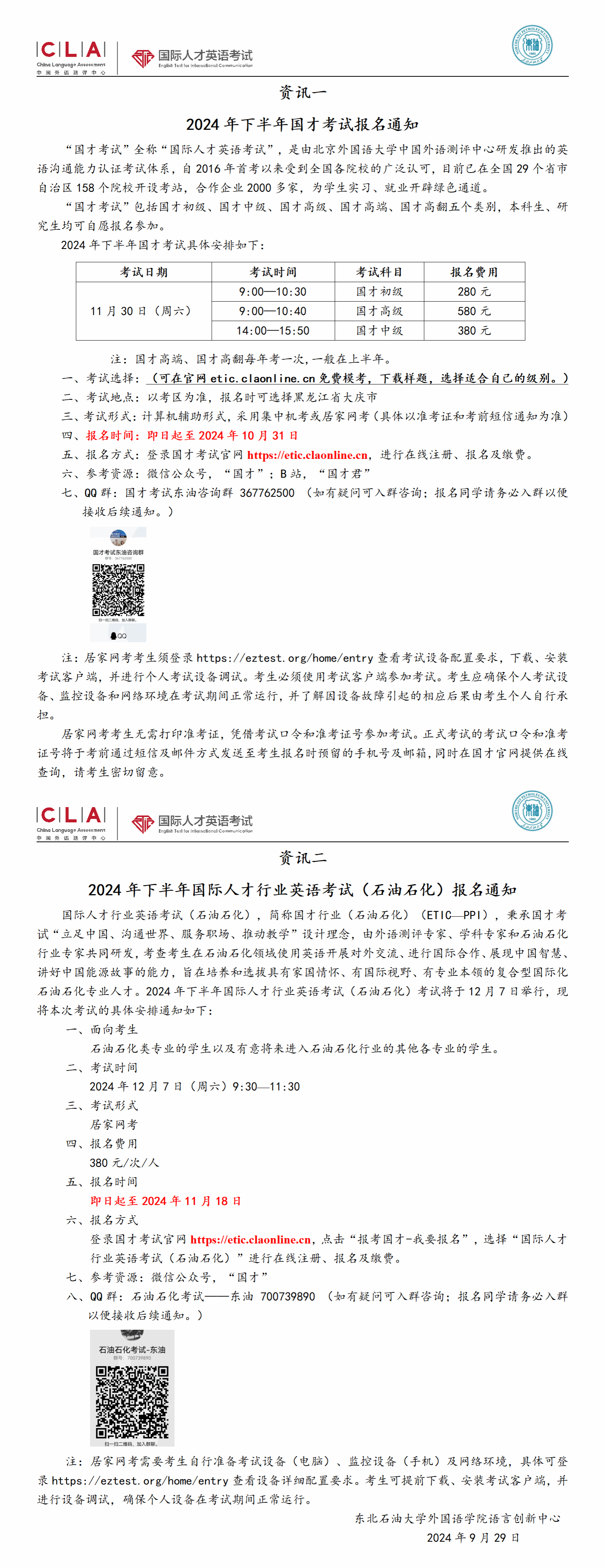 2024年下半年国才考试资讯